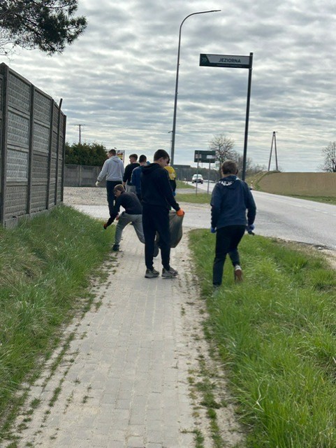 Drugą częścią projektu była wspólna akcja sprzątania terenu wokół szkoły i naszej miejscowości. Uczniowie, wyposażeni w rękawiczki i worki, zbierali odpady. Dzięki zaangażowaniu uczestników udało się uporządkować okolicę oraz zwrócić uwagę na problem zaśmiecania środowiska. Projekt był doskonałą okazją do nauki poprzez działanie. Uczniowie pokazali, że troska o planetę może być prosta, a jednocześnie bardzo ważna. Dziękujemy wszystkim uczestnikom za aktywny udział i zaangażowanie w obchody Dnia Ziemi.