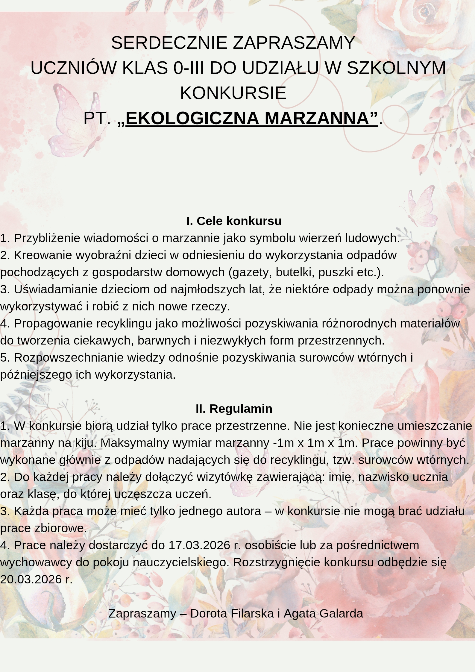 ''Ekologiczna Marzanna'' - zapraszamy do udziału w konkursie uczniów kl. 0 - 3