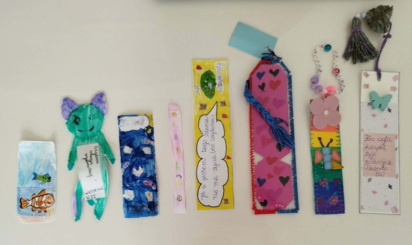 Celem wydarzenia było rozwijanie wyobraźni, zdolności manualnych oraz promowanie czytelnictwa wśród dzieci i młodzieży. Uczniowie przygotowali niezwykle pomysłowe prace, wykorzystując różnorodne techniki i materiały – od rysunku po wyklejanki, a nawet elementy przestrzenne. Każda zakładka była inna i odzwierciedlała indywidualny styl autora. Wśród prac pojawiły się motywy związane z ulubionymi książkami, postaciami literackimi, przyrodą oraz fantazją.