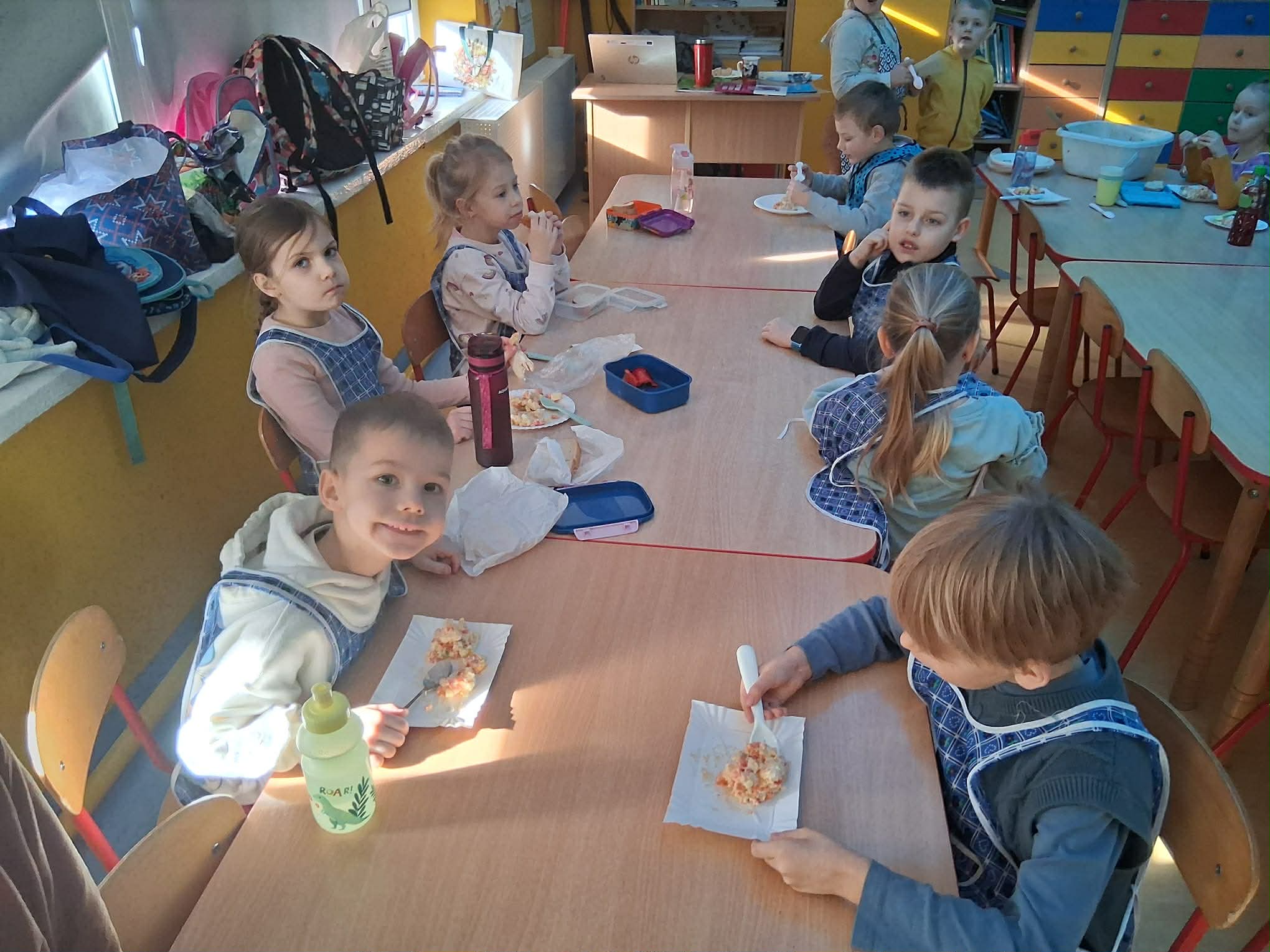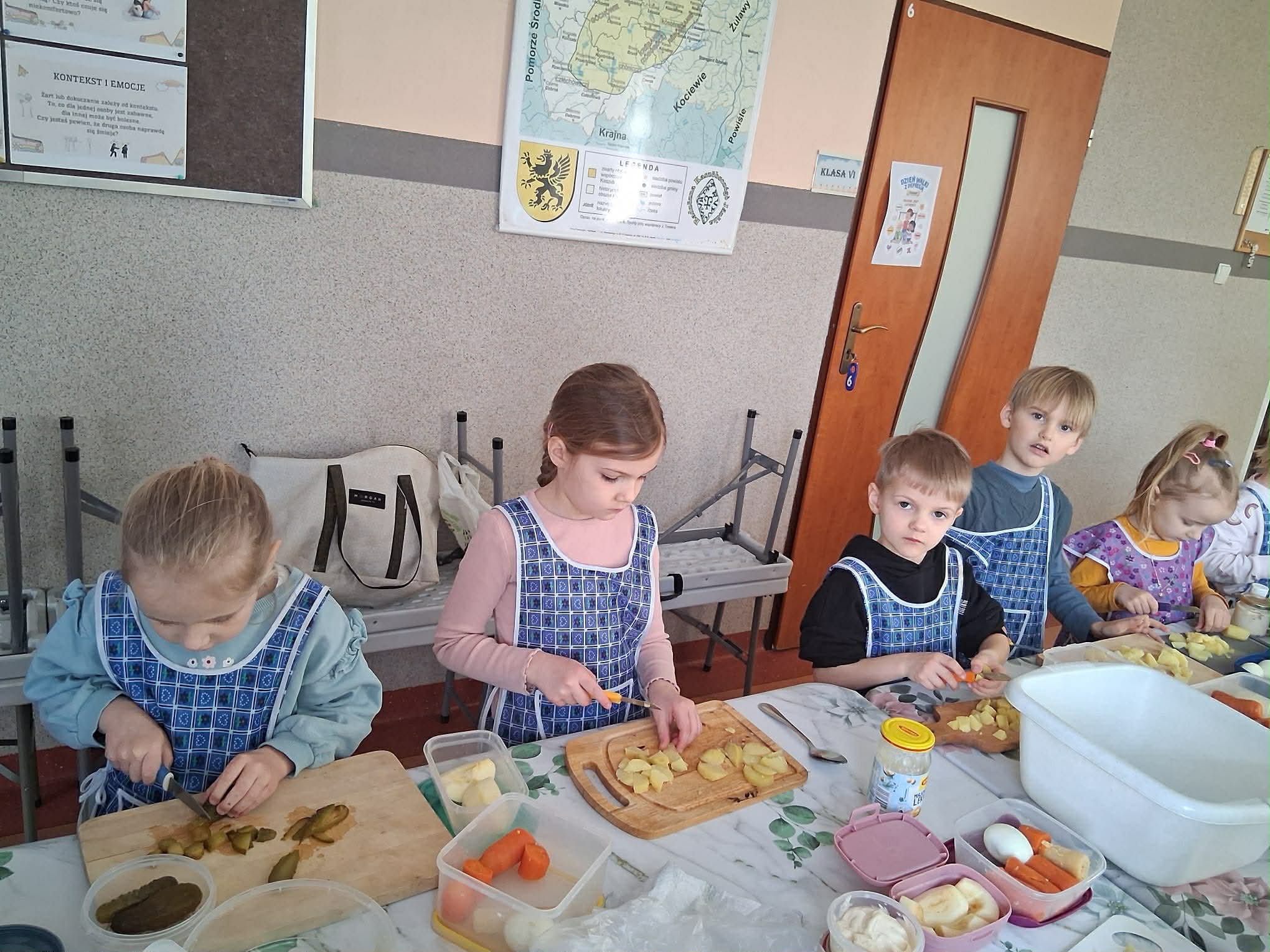 Dzieci świetnie się przy tym bawiły, a wspólne przygotowywanie sałatki sprawiło im dużo radości. Sałatka bardzo im smakowała.