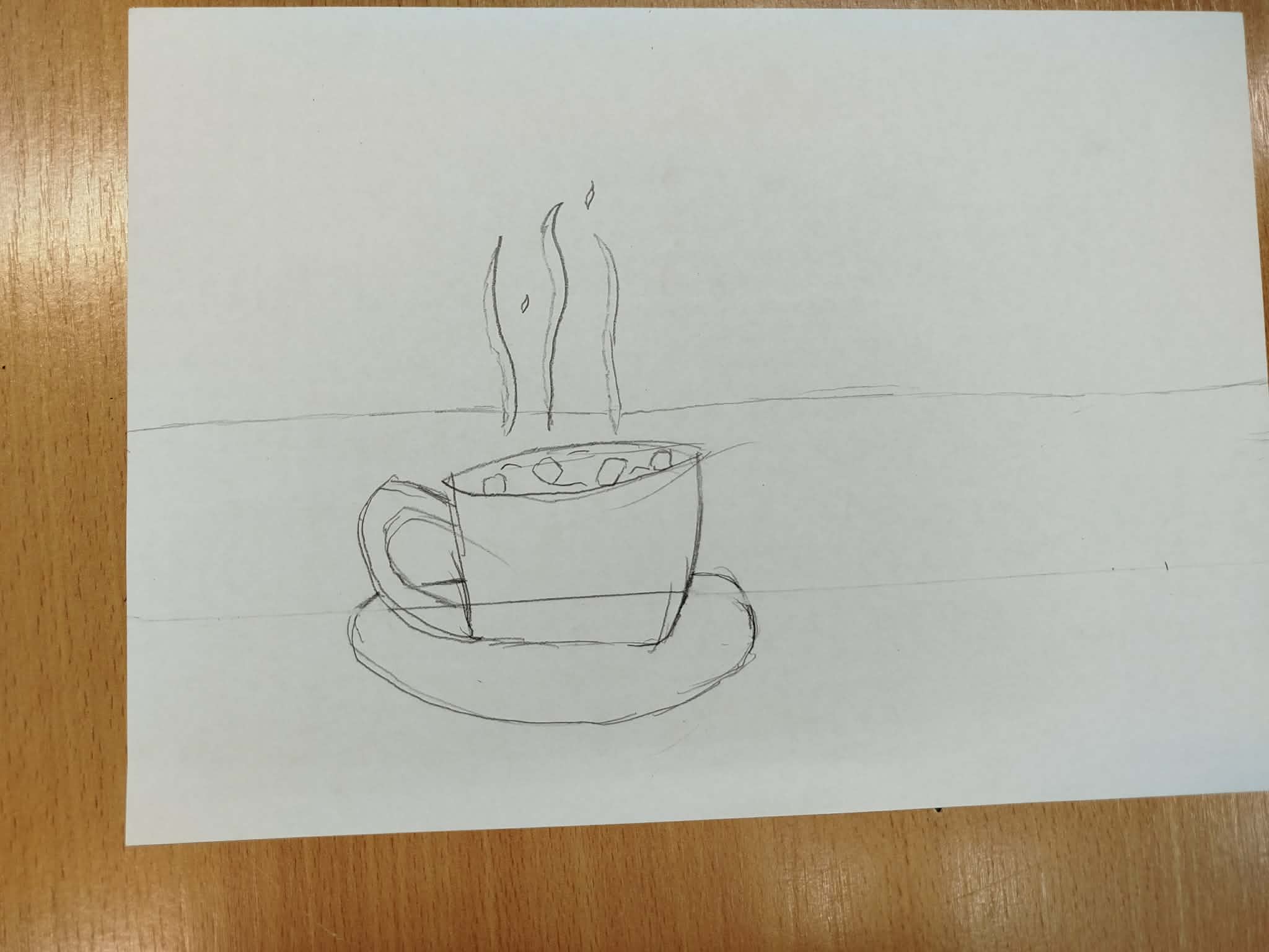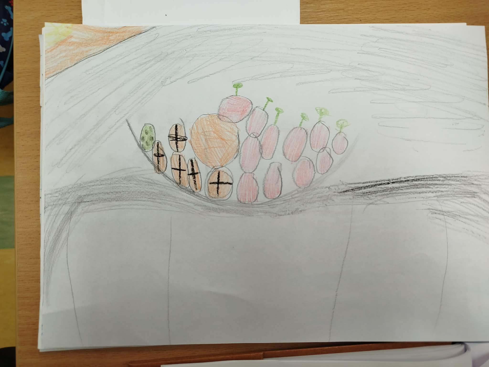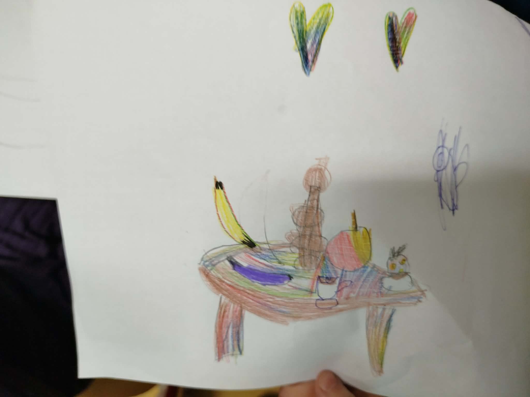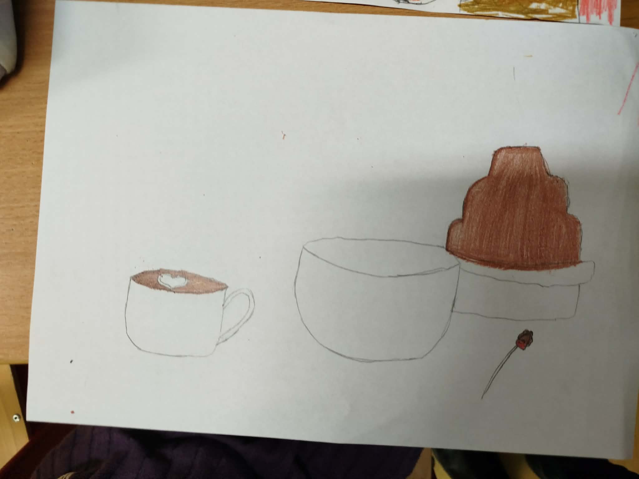 Uczniowie malowali martwą naturę kredkami, zwracając uwagę na: