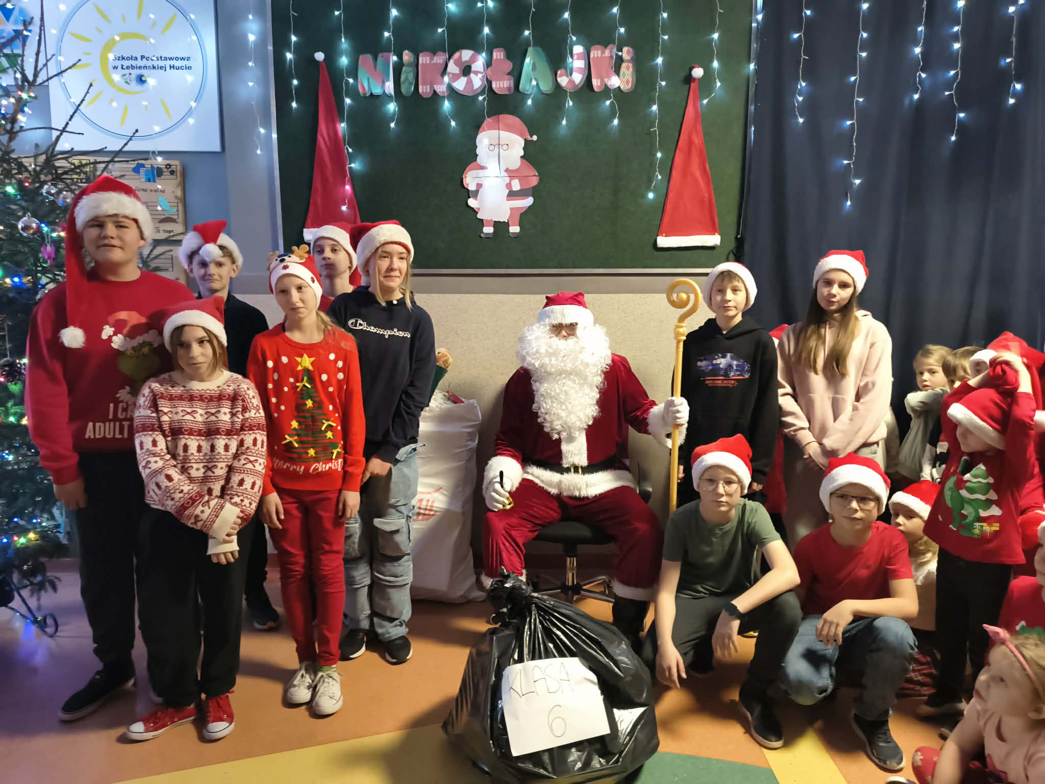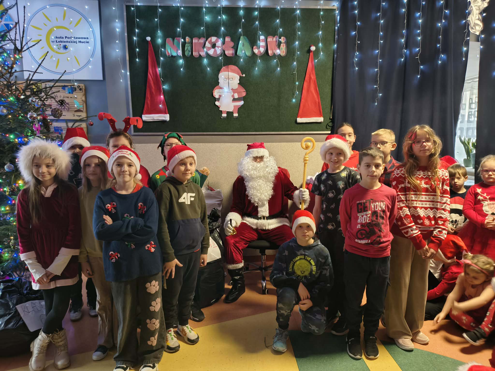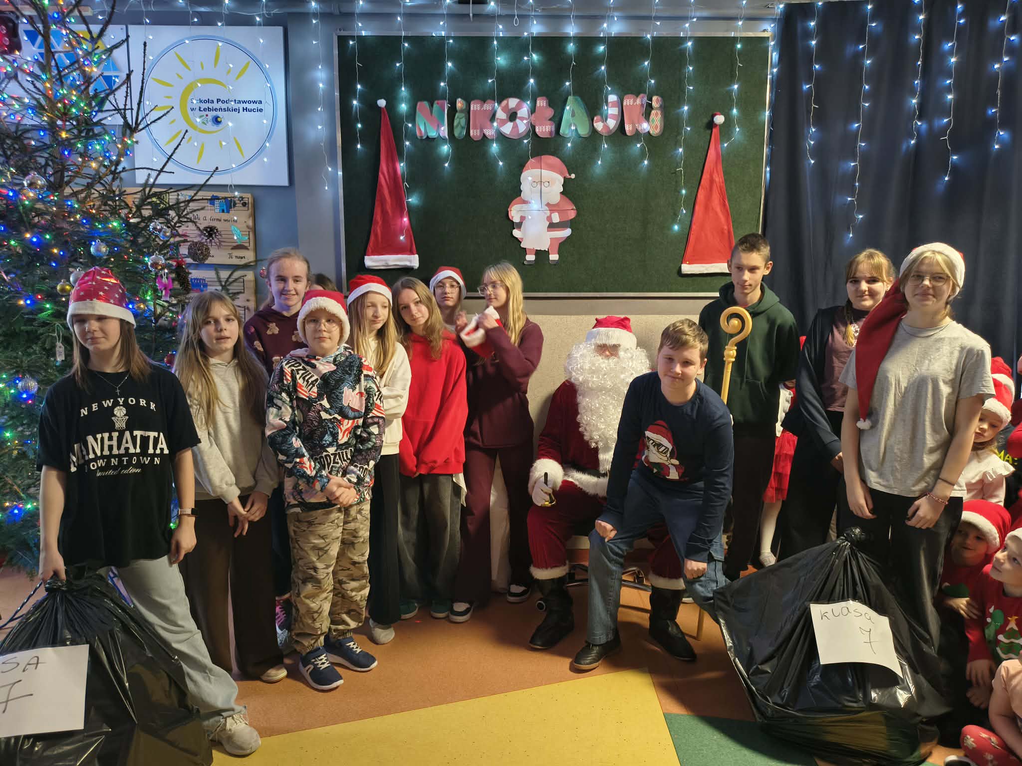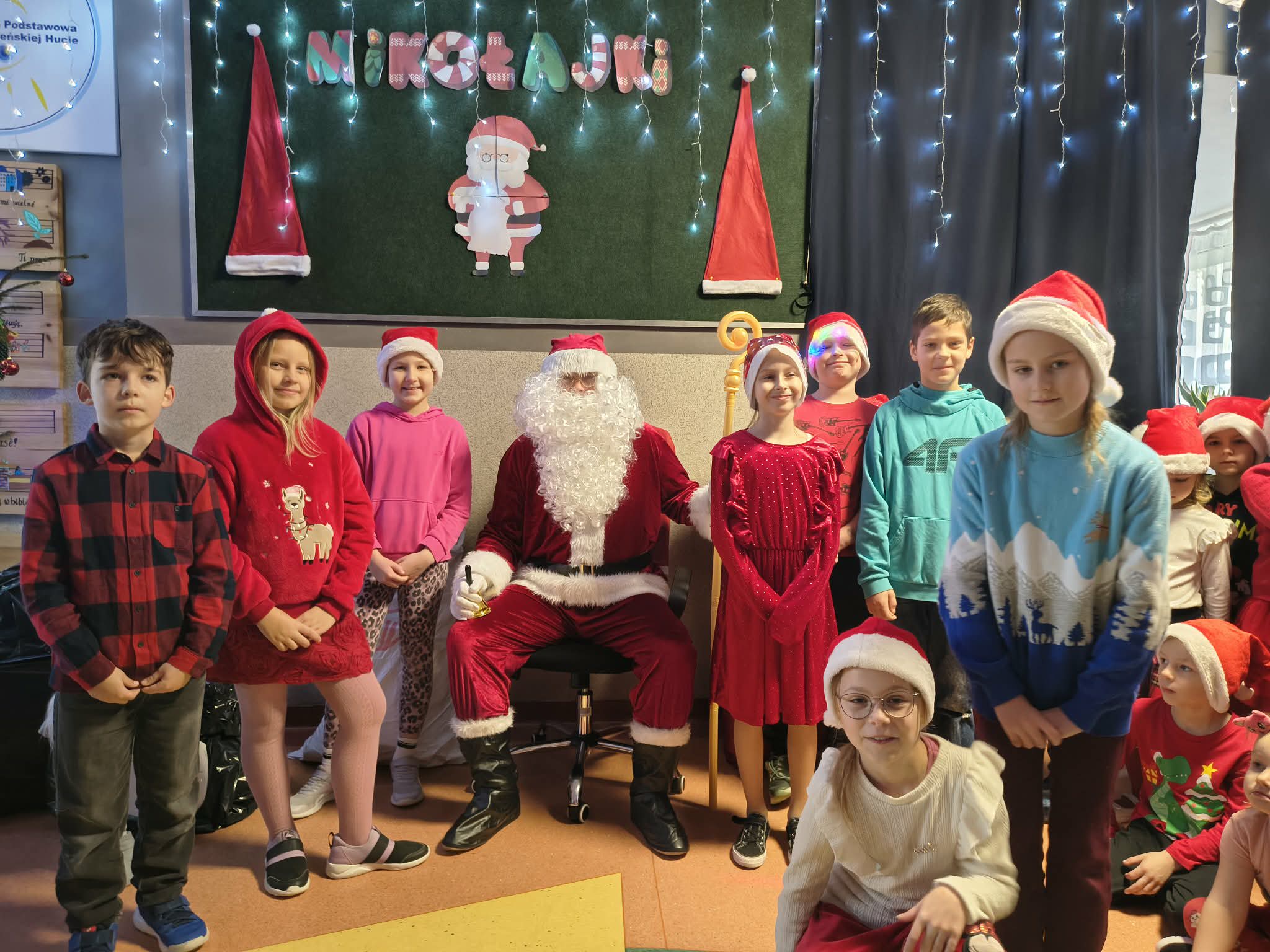 Było wesoło i radośnie — rozbrzmiewały kolędy, a szkolny korytarz wypełnił się uśmiechami i świątecznym nastrojem. Uczniowie ubrani na czerwono, w mikołajkowych czapkach, wyglądali naprawdę wyjątkowo!