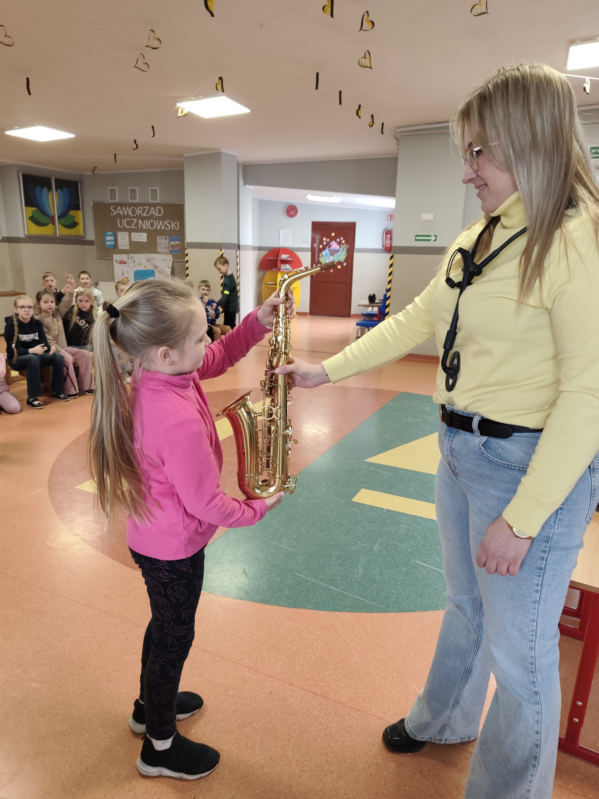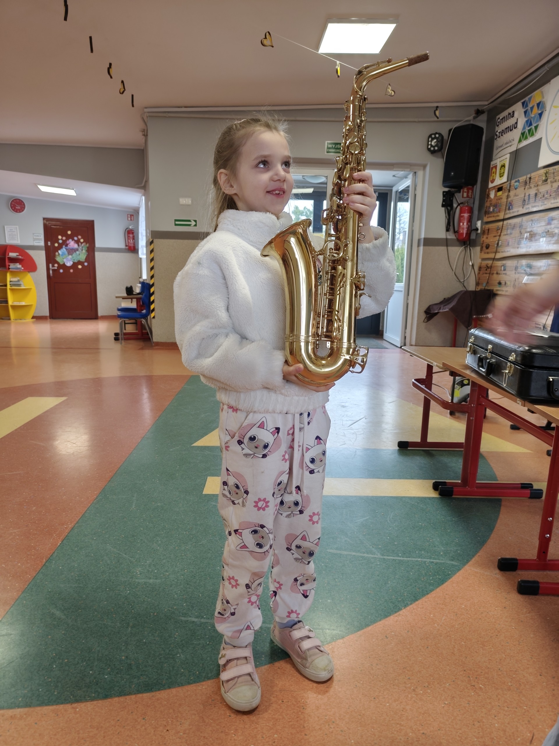 Pani Paulina ukończyła szkołę muzyczną i z wielkim zaangażowaniem podzieliła się swoją wiedzą oraz doświadczeniem. Podczas zajęć zaprezentowała dzieciom saksofon – instrument dęty drewniany.