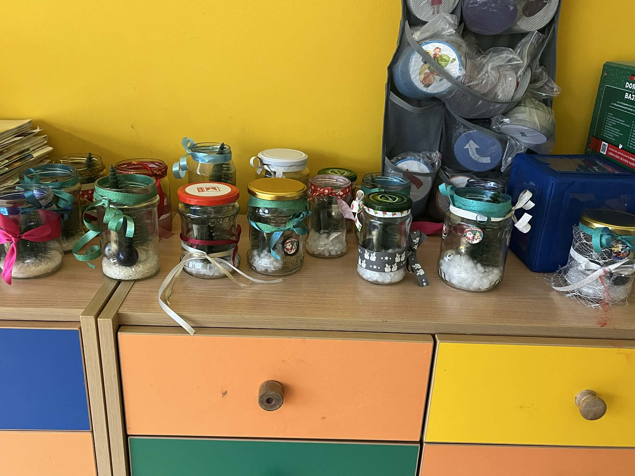 Wykonaliśmy już świąteczny las w słoiku, bałwankowe kartki z ryżem, udekorowaliśmy naszą choinkę i stworzyliśmy urocze Mikołaje.