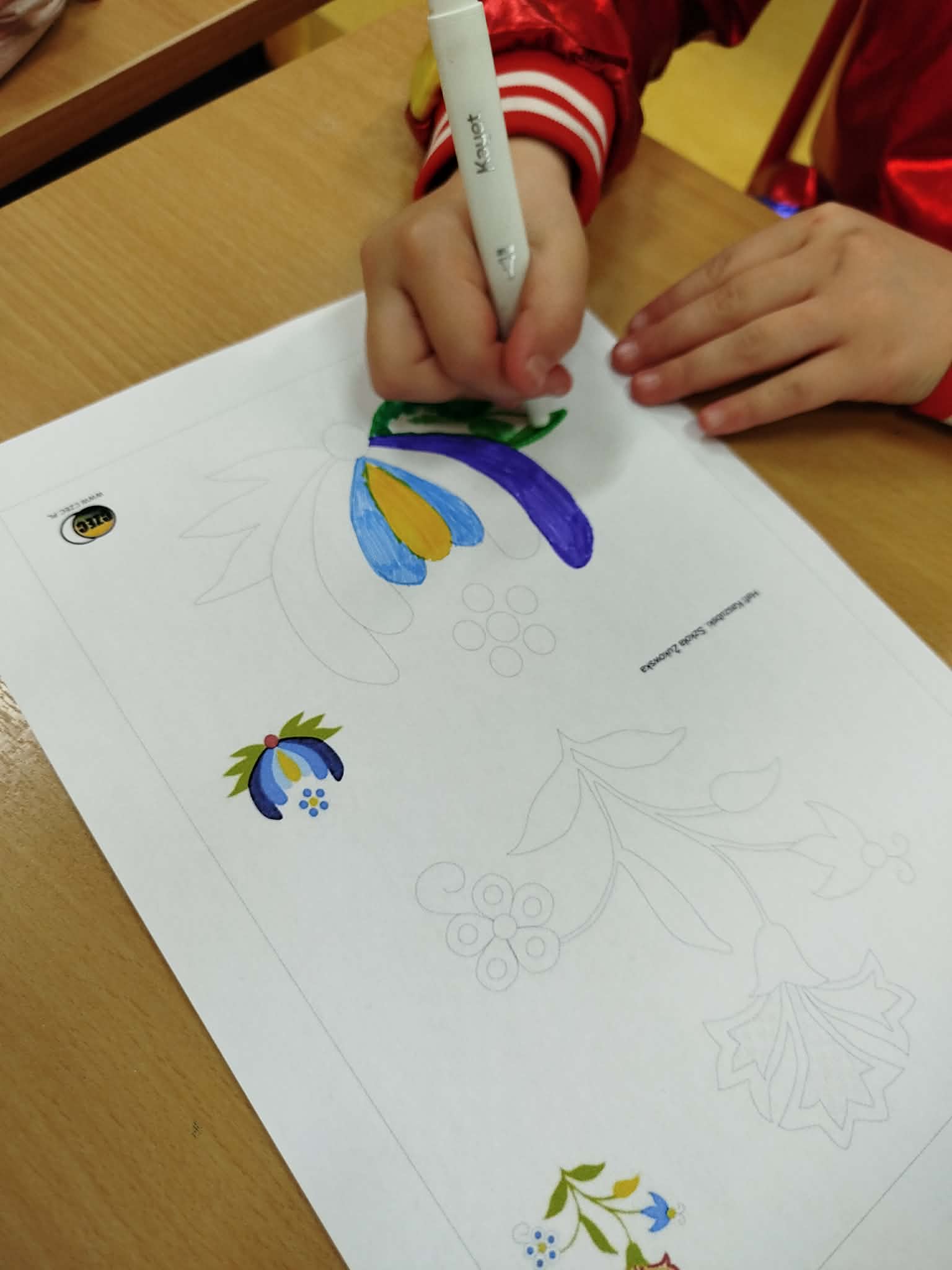 Przypomnieliśmy sobie barwy haftu oraz rozwiązywaliśmy proste kaszubskie zadania.