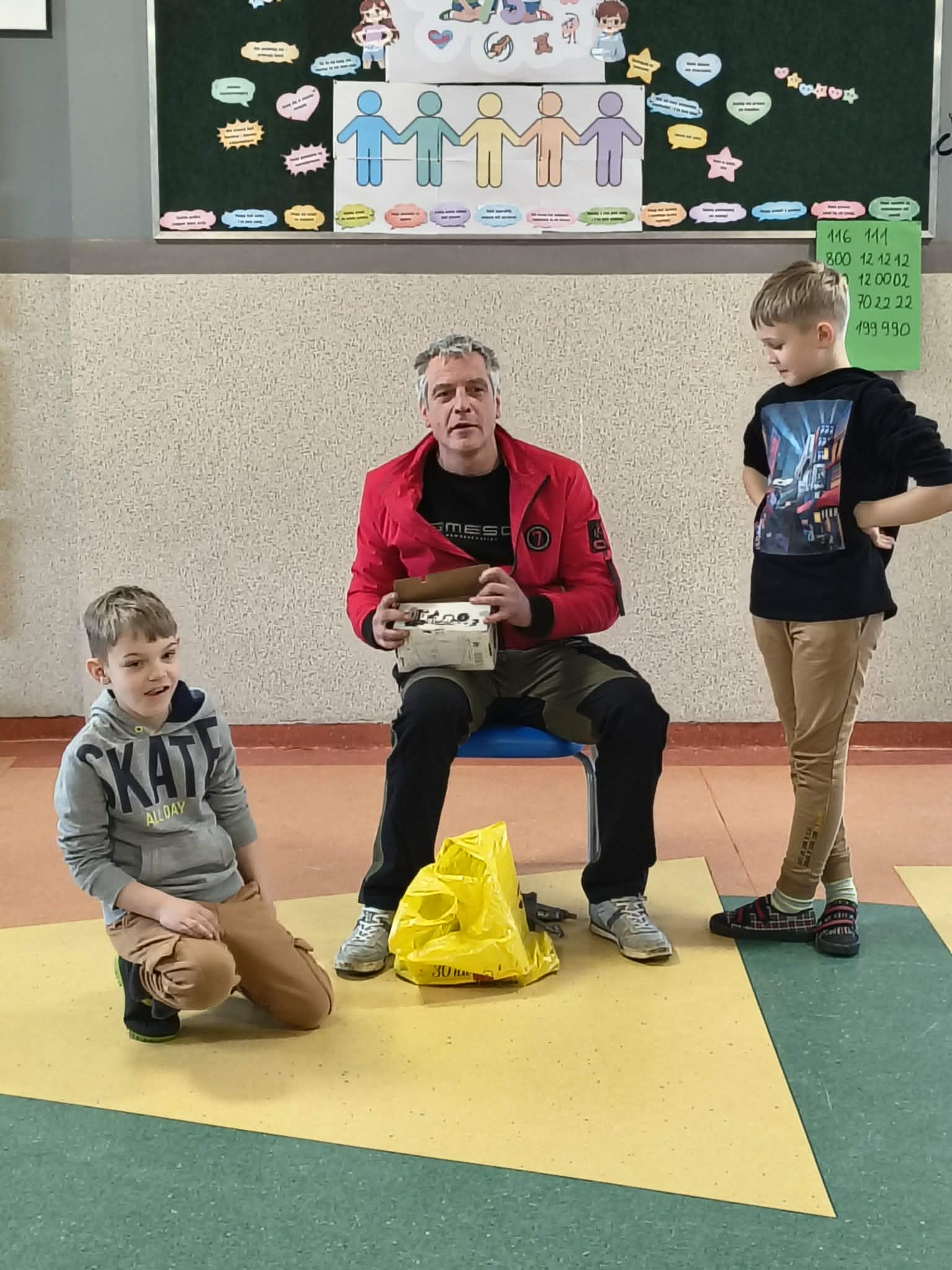 W dniu dzisiejszym gościliśmy w naszej szkole Pana Bartosza Bach, który przybliżył dzieciom z klas I i II tajniki zawodu mechanika samochodowego. To nie była tylko teoretyczna prelekcja! Pan Bartosz przyniósł ze sobą profesjonalny ekwipunek, który wzbudził ogromne zainteresowanie dzieci.