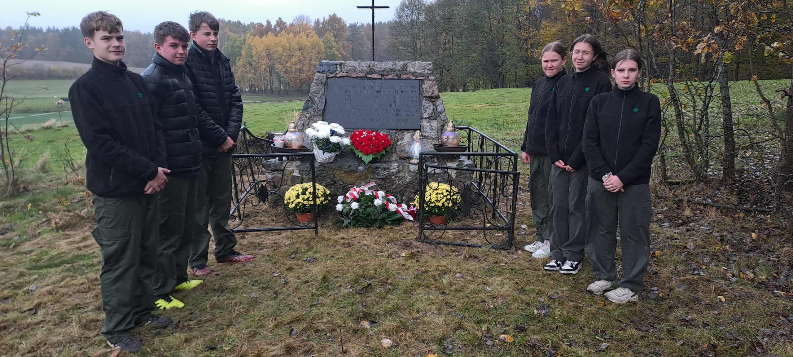 Jak co roku, delegacja z naszej szkoły udała się na Różny Dąb, by uporządkować pomnik poświęcony 10 polskim zakładnikom zamordowanym przez hitlerowców w 1944 roku.