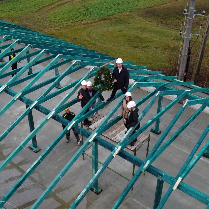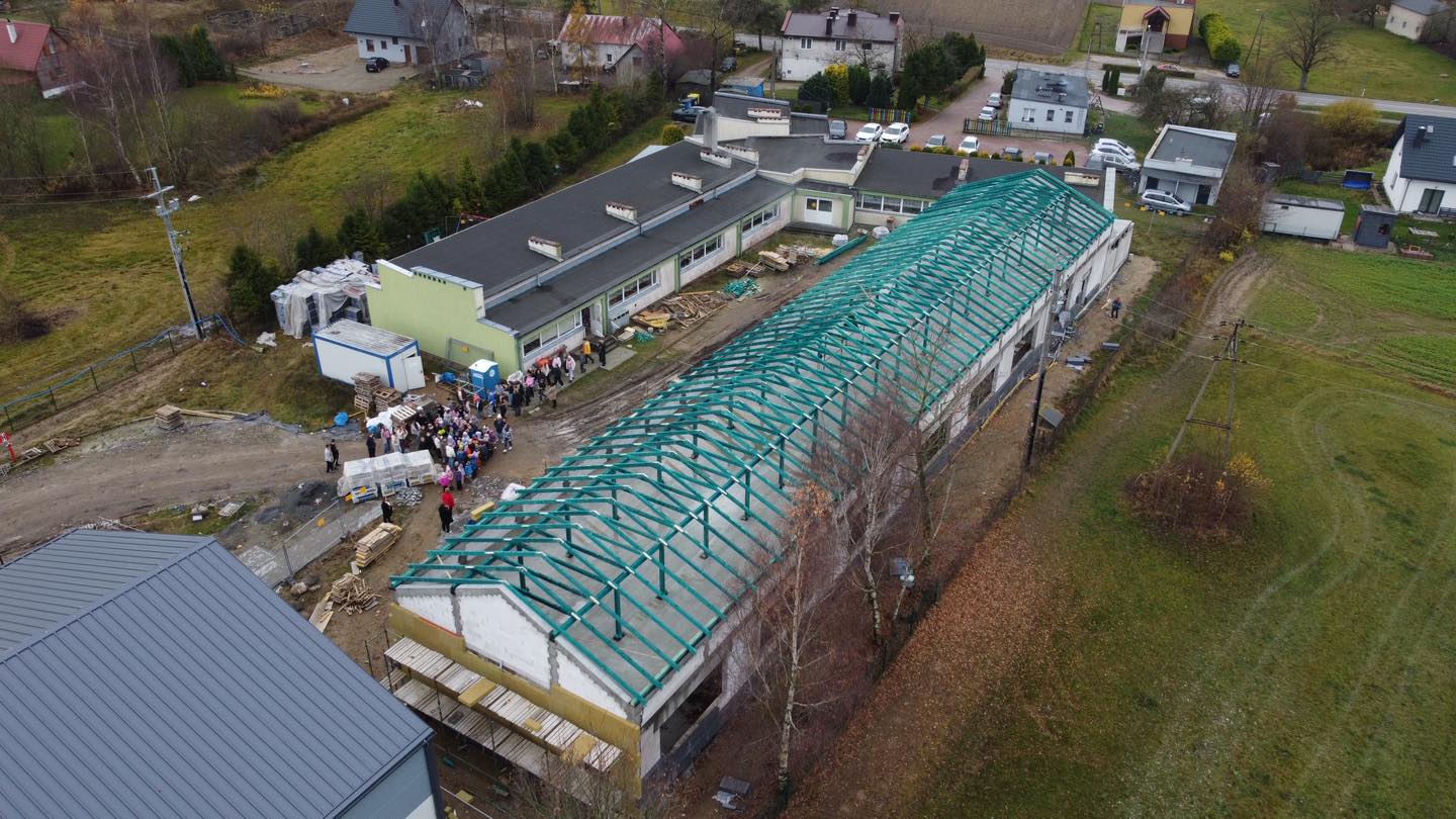 To ważny dzień dla naszej szkoły w Łebieńskiej Hucie – na nowo budowanym skrzydle zawisła tradycyjna wiecha!