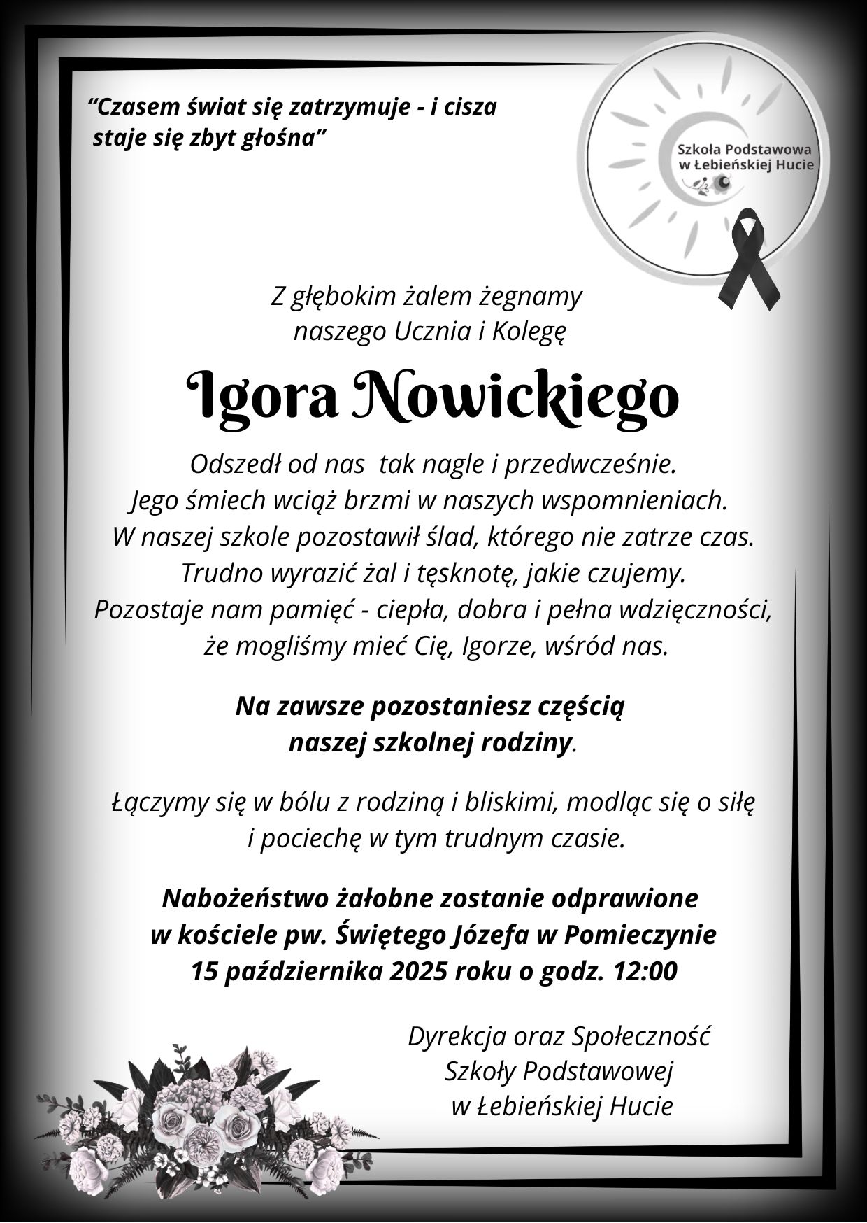 Z głębokim żalem żegnamy naszego Ucznia i Kolegę - Igora