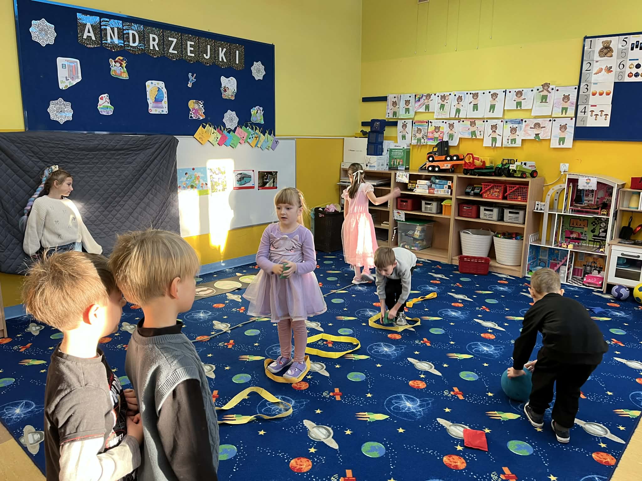 Dzieci ćwiczyły koordynację wzrokowo-ruchową, rozróżnianie strony lewej i prawej oraz koncentrację uwagi.